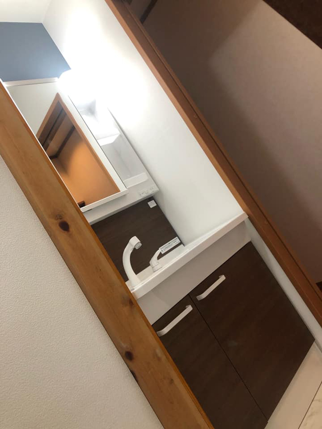洗面所も欲しいとの事で、既存の壁を解体移動、新規で洗面台を設置致しました。
