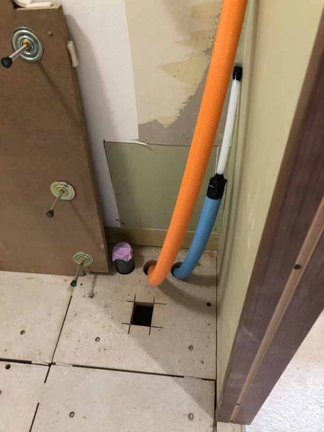 既存の配管は全部撤去し新規に配管を引きなおしました。