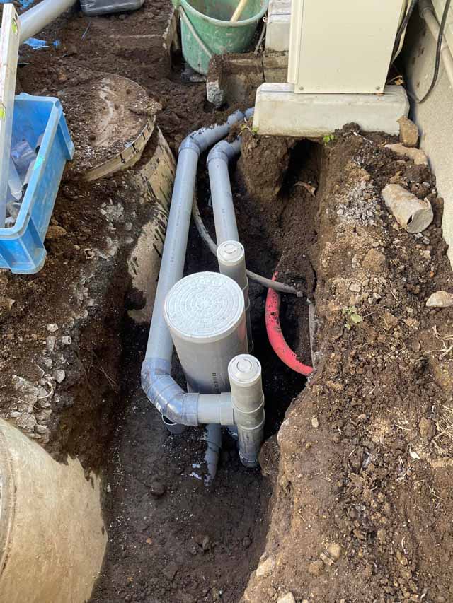 浄化槽や汲取り式トイレの排水を下水本管に流すための工事です。